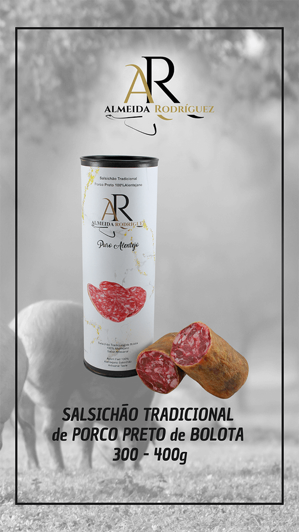 Durante a campanha de abate dos porcos de bolota, na Almeida Rodríguez selecionamos as melhores carnes e acompanhamos o processo de fabrico e cura dos produtos escolhidos. A carne de porcos alimentados a bolota com total liberdade, abrigados pelas azinheiras e sobreiros faz com que o Salsichao Tradicional seja um produto de excelencia, um sabor muito intenso e persistente e uma tenrura e textura inigualaveis.