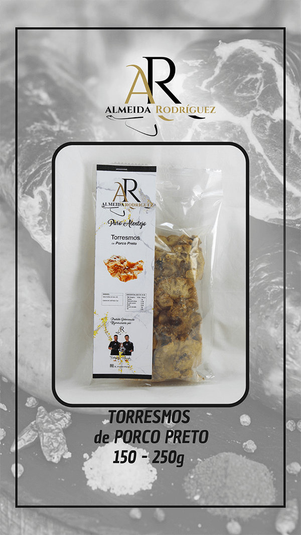 Um produto tão simples como complicado ao mesto tempo, banha e gordura de porco preto fritas a uma temperatura e num tempo certo, nem mais, nem menos com o objetivo de conseguir uma cor dourada e uma textura estaladiça. Na Almeida Rodriguez fazemos com que este produto tão procurado esteja sempre perto de si. Bolsas com 150g aprox.